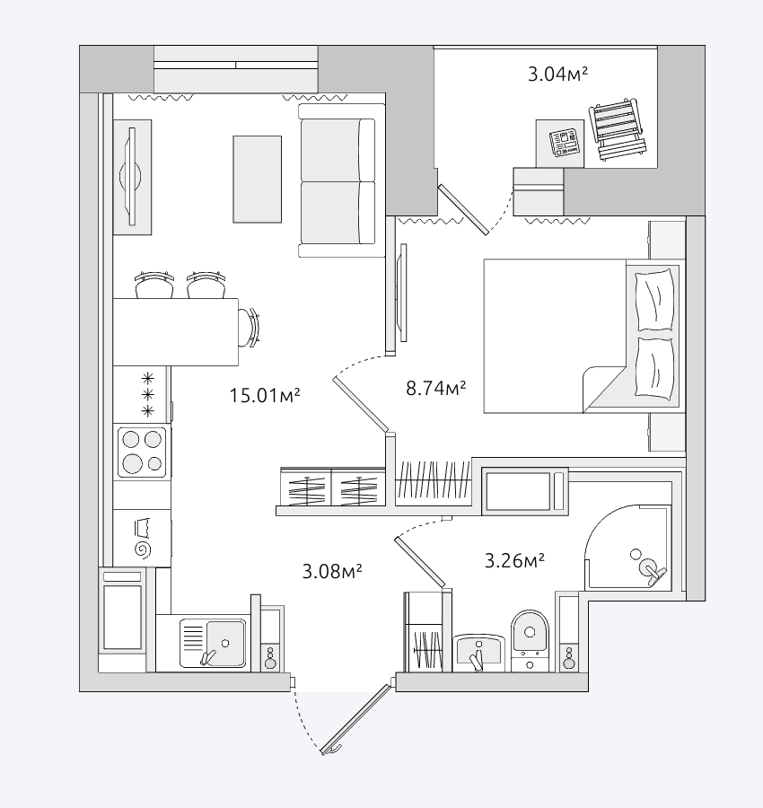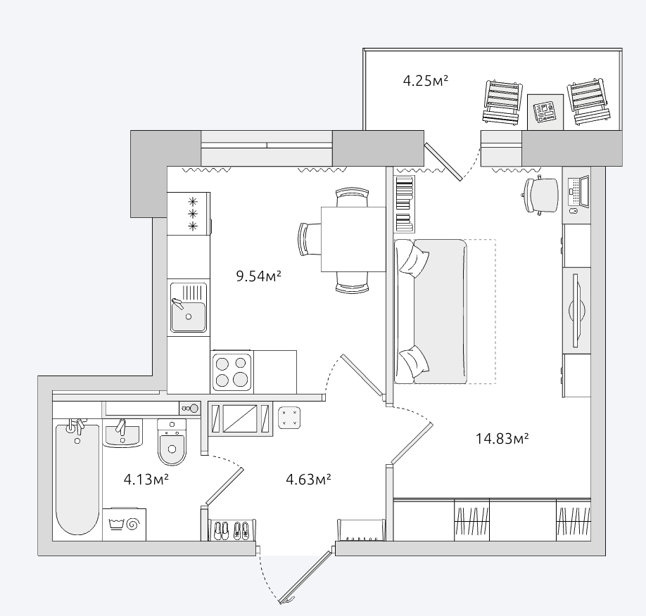 Студия 33,8м2