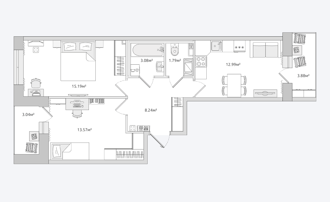 3Евро 57м2