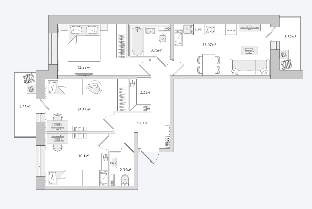 3Евро 65м2